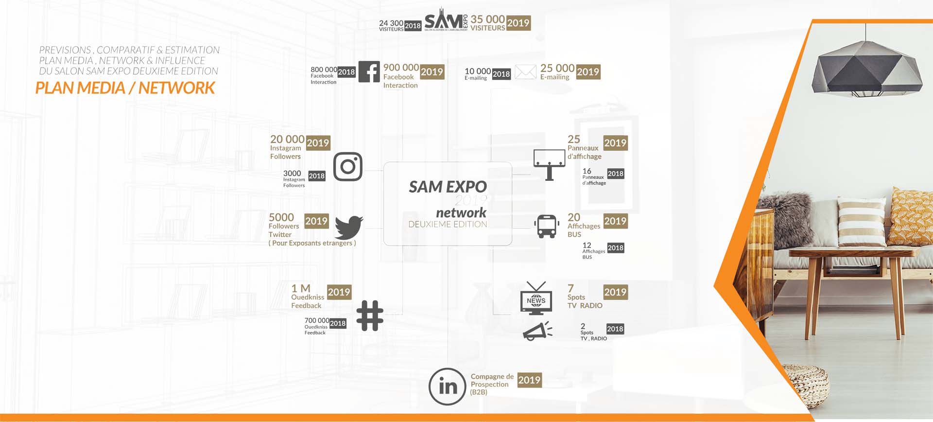 PREVISIONS , COMPARATIF & ESTIMATION PLAN MEDIA , NETWORK & INFLUENCE DU SALON SAM EXPO DEUXIEME EDITION